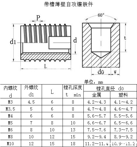 带安全槽的自攻镶嵌件